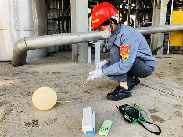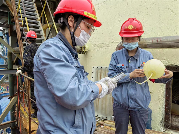7點整到達檢修地點,各檢驗分隊隊長集合隊員,對一天的人員組隊情況進行安排部署,并強調(diào)安全動火分析要點及票證填寫注意事項。待檢修人員辦理好票證,檢修現(xiàn)場的空間動火、管道動火、受限空間分析接踵而至,質(zhì)檢女工們“來者不拒”,配合分廠做好每一個安全分析。管廊下,塔頂上,設(shè)備旁,錯綜復(fù)雜的檢修現(xiàn)場,隨處都可以看到背著動火包的她們,忙而不亂,急而不慌。