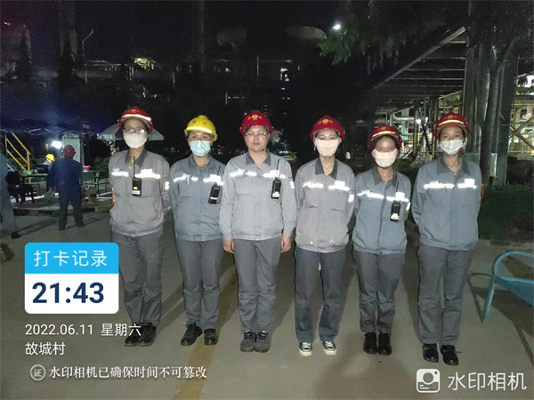 夜色降臨,直至凈化工段檢修現(xiàn)場最后一個受限空間分析結(jié)束,質(zhì)檢女工們才收拾好安全分析裝備,整齊列隊拍照,21點43分,她們一天的檢修分析任務(wù)圓滿結(jié)束。雖然檢修分析任務(wù)緊,戰(zhàn)線長,但質(zhì)檢女工們克服困難,迎難而上,她們用自己的行動詮釋著一名質(zhì)檢員的責(zé)任,為大檢修保駕護航。(質(zhì)量計量中心 孟媚)
